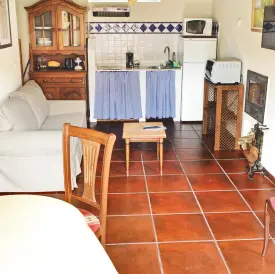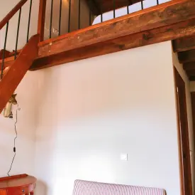 El apartamento de 4 plazas cuenta con dos habitaciones dobles con cama matrimonial de 135 cm, ambas con baño. La habitación de la planta baja es adecuada para personas con alguna discapacidad física o de edad avanzada, ya que se encuentra al nivel de la calle y tiene un cómodo acceso al baño y a sus elementos. En la habitación de la planta superior hay un pequeño espacio a modo de salita en el que puede montarse una cama supletoria, y la cama está situada en un altillo, cuyo acceso puede resultar incómodo para personas con algún problema de movilidad.